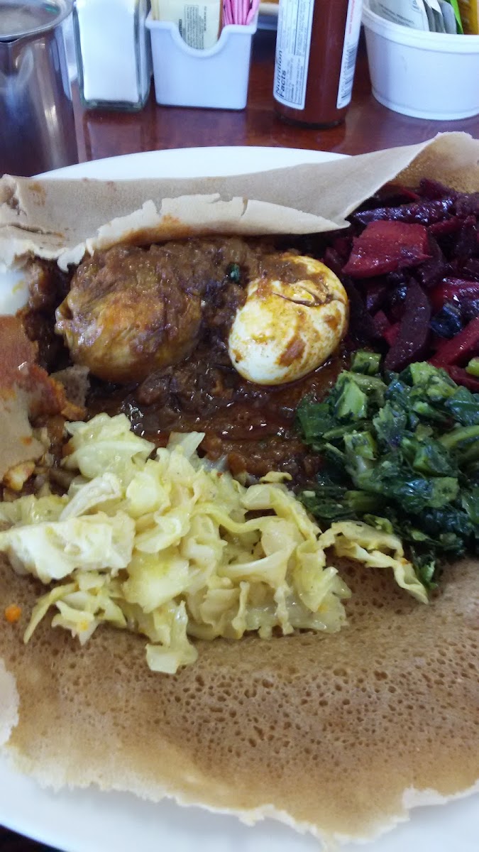 The dining experience here is informal but comforting, with a menu that weaves together classic diner staples, Mexican flavors, and Ethiopian influences—an unusual combination that works well in practice. The vegetarian plate featuring injera, Ethiopia’s staple teff bread, pairs well with hearty sides like country-style potatoes or hash browns, catering to both adventurous eaters and those seeking simple, satisfying meals. Other notable dishes that reflect the café’s range include shrimp fajitas, pastrami sandwiches, and breakfast offerings such as the Cali omelet with pancakes or the Waffle Slam breakfast, making it a solid choice for any meal of the day.